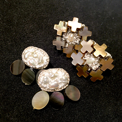 真珠や天然石を縫い込んだ
