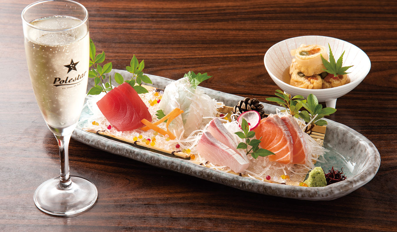 「ポールスター」に小鉢とお刺身をセットにして。